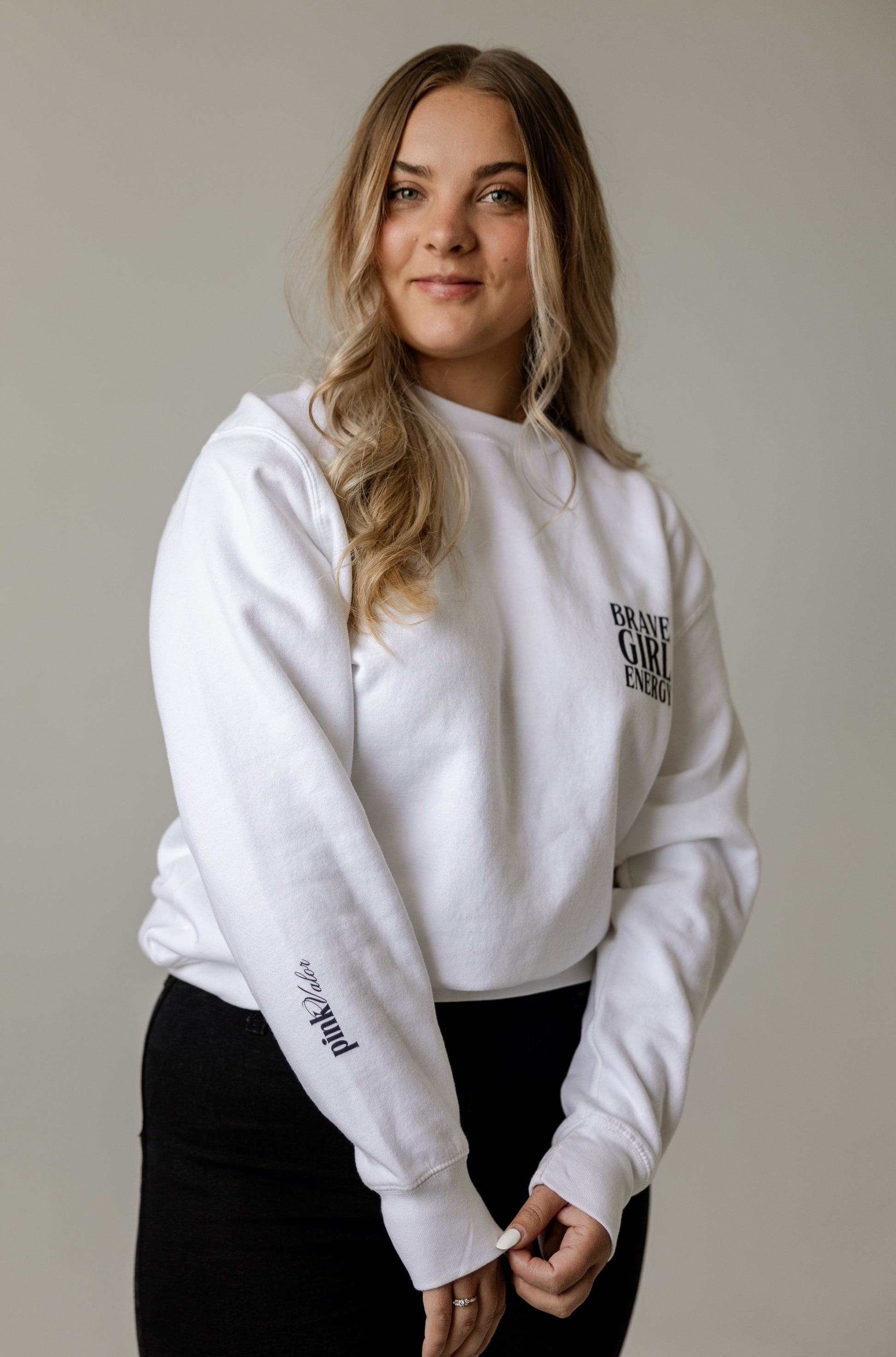 Our classic Brave Girl Energy sweatshirt silhouette with ribbed crew neck, long sleeve cuffs, and a flat hem. Layer it up or wear it on its own for a contemporary streetwear look. With the soft fleece inside and comfortable fit, it’s sure to become your favorite everyday sweater right away!